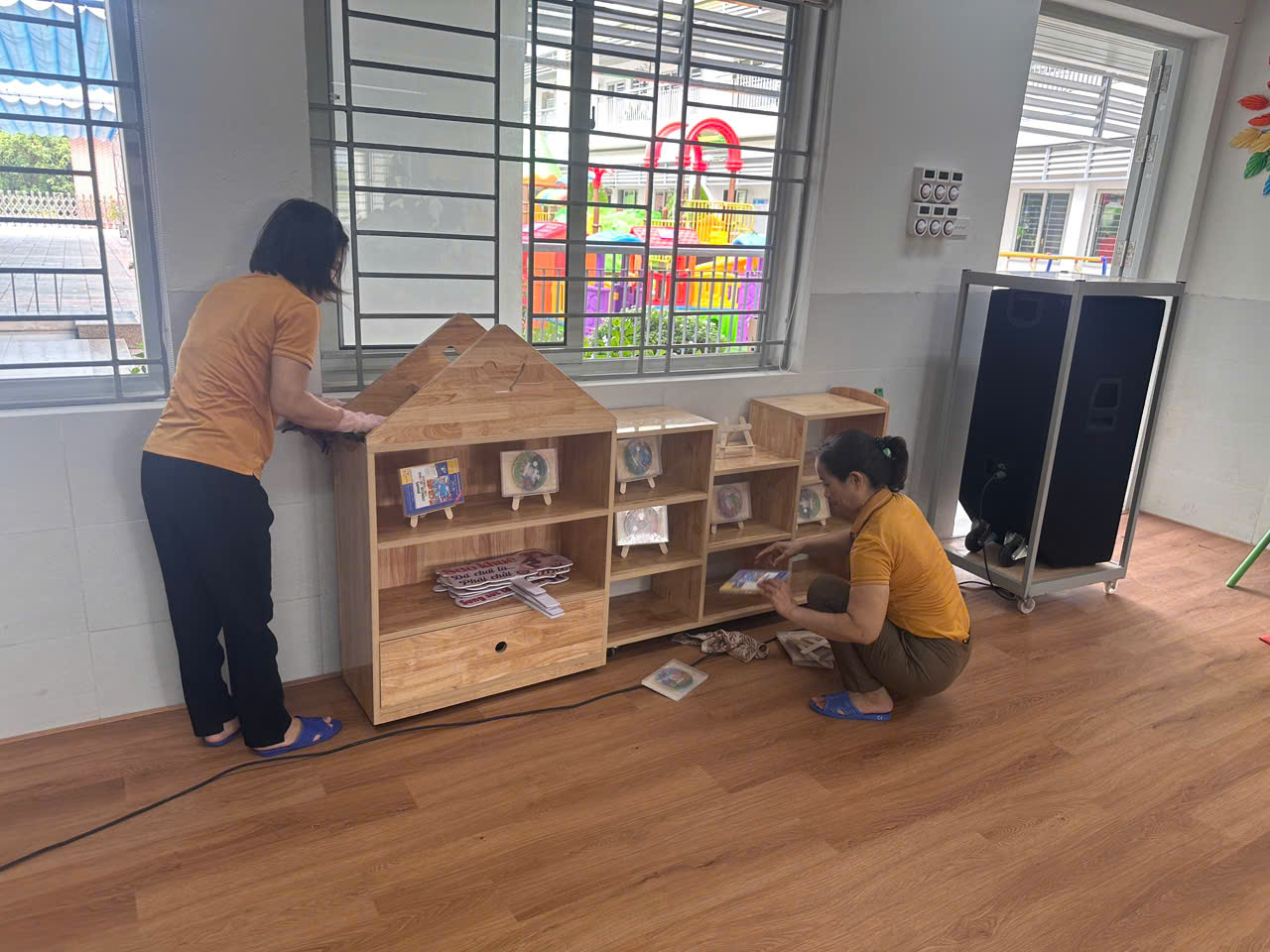 Trong mỗi buổi tổng vệ sinh, cán bộ - giáo viên - nhân viên nhà trường cùng chung tay dọn dẹp sạch sẽ lớp học, sân trường, khu vực nhà vệ sinh, nhà bếp… Các vật dụng chứa nước được kiểm tra kỹ lưỡng, úp ngược hoặc có nắp đậy để không tạo điều kiện cho muỗi sinh sản. Các khu vực cây xanh, chậu hoa cũng được chăm sóc, dọn dẹp thường xuyên để đảm bảo khô thoáng, sạch sẽ.