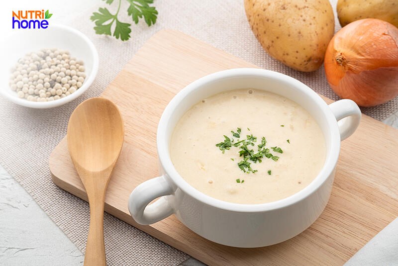 - Thêm nước hoặc sữa vào quấy cho khoai mềm và sánh lại là được.